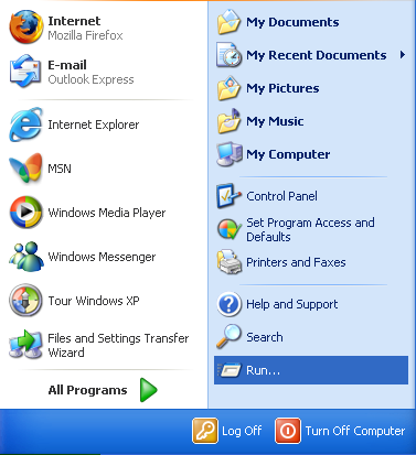 1. Click on “Start” on the taskbar.2. Click “Run” located in the start menu.